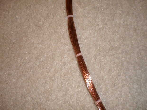 Luego tomó mi carrete de 5 libras de alambre magneto de calibre 20 y comenzó a envolver alrededor de la estrella. Dejó unas 12 pulgadas de plomo para iniciar, envuelve dos veces alrededor de la uña más bajo y comenzó el ajuste en sentido horario. No importa que camino envuelva, sólo asegúrese de envolver ambas bobinas en la misma dirección! Cuando hice 60 vueltas, había anclado el cable y corte sueltos del rollo. Alrededor de la bobina solía pequeñas ataduras de cremallera de nylon (3 pulgadas) unen el cable. Espaciados los lazos cada 2 pulgadas. No repuesto em; lo último que desea es 60 vueltas de 20 calibre alambre suelta! Si no tienes ataduras de cremallera, puede envolver la bobina revaluarse a intervalos con cinta aislante.