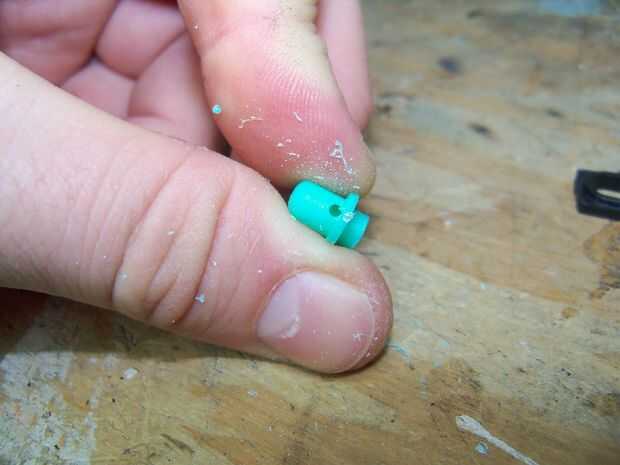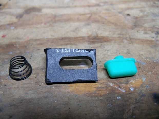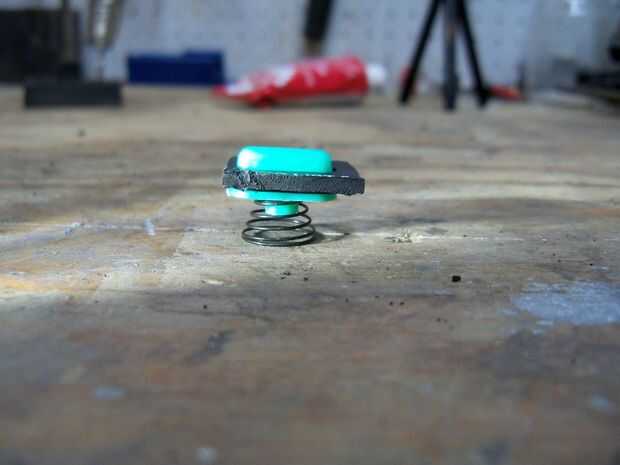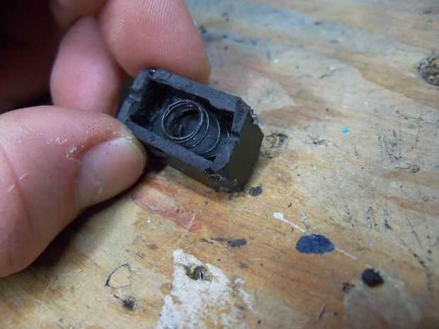 Coseché un botón y poco recambio de plástico de un teclado viejo, roto y un manantial de... No recuerdo, algo. Recuerde siempre de Malki número 5 de la regla!. Corte el plástico y pegamento en forma de una pequeña caja, entonces puso el resorte interior.