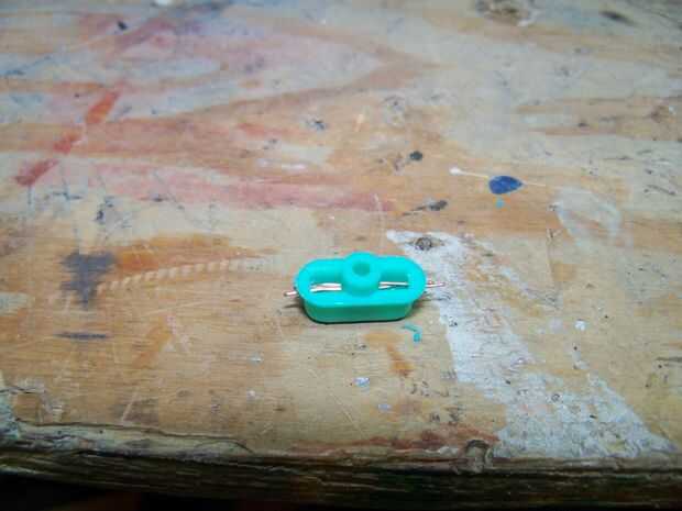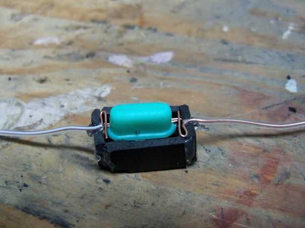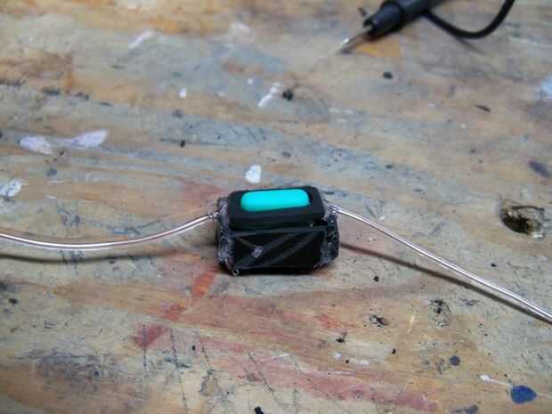 A continuación, perfore un pequeño agujero a través el botón y deslice en una pequeña longitud de alambre de cobre. Coloque el botón en la parte superior del resorte. A ambos lados de la caja, coloque otro pedacito de alambre en la parte superior el cable del botón (ver fotos). El resorte empujó el botón con su cable con los cables a ambos lados de la caja, haciendo contacto entre ellos. Cuando presiona el botón se rompe contacto! Si todo parece en orden de trabajo, pegar la parte superior de la caja en su lugar y pasemos al siguiente paso.