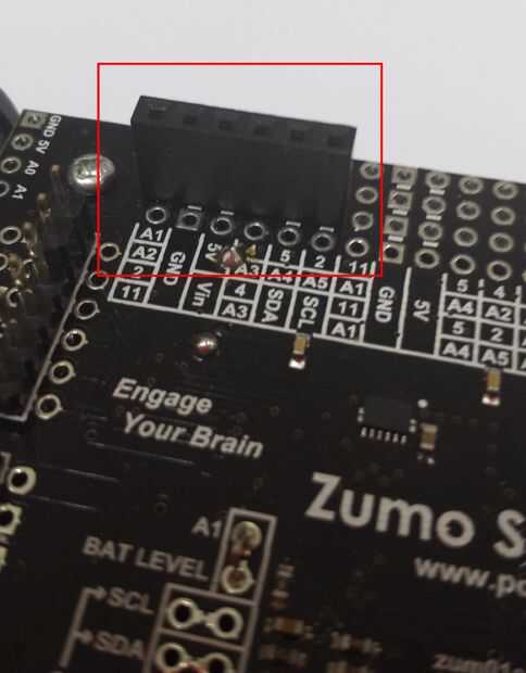 Después de la Asamblea, de la soldadura el 2,54 mm hembra jefe del Pin al pin 2 y el agujero de la tierra en el escudo de Zumo. Utilizaremos 2 pines de Arduino para disparar el misil.