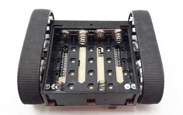 La base de la ABT está construida utilizando kit de tanque de Zumo de Pololu. Está diseñado para Arduino Uno/Leonardo y, por lo tanto, se adapta Annikken Andee perfectamente. Lo que más me gusta es que todo el conjunto (escudo de Zumo, Andee y Arduino) puede ser alimentado por 4 baterías de x AA encontradas debajo del chasis. Esto significa que no necesito montar una batería externa para el Abt