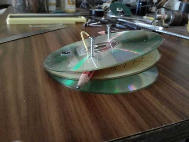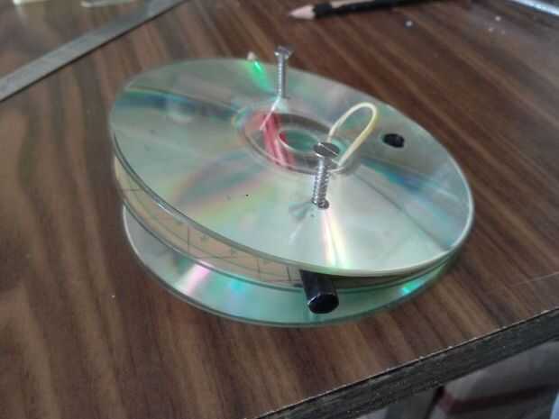 A lo largo de este instructable voy hacer referencia a los CDs como superior, medio e inferior. El teléfono móvil se lleva a cabo entre la parte inferior y media CD y la lente se une al CD mediano sólo el espécimen se coloca en el CD superior. El lápiz y los tornillos actúan como bisagras para tres CDs. Una banda de caucho mantiene juntos los tres.