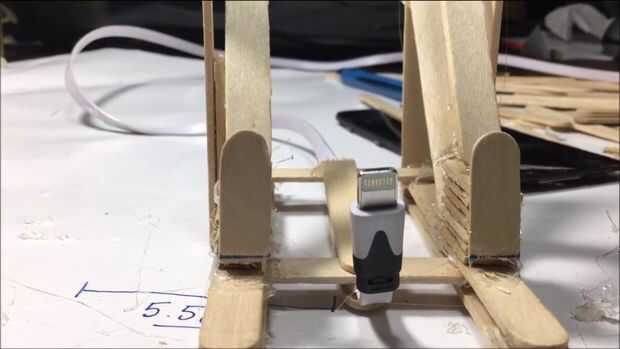 Construí esta estación de acoplamiento para mi iPod 6 Gen utilizando algunos palitos, pegamento caliente y un cable barato rayos planos. Es útil para lo siguiente: iPhone iPod 5,6 5, 5S, SE. Puede modificarse fácilmente para cualquier teléfono. Si usted hizo el comentario. Si les gusta ver otras ideas. Ver el video de YouTube también para algunas tomas.