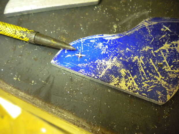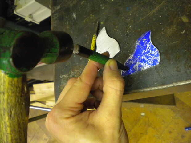 Utilizar una pizarra para marcar los dos agujeros para los tornillos sujetar las barras de acero en su lugar, no debe ser demasiado al borde y se necesita una varilla en el frente bajo y el otro en la espalda alta. Centro de perforar las marcas para perforar.