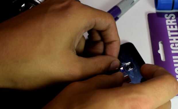 de todos modos después de que ha hecho y seco, hacer otra capa mas de cinta y de color azul una vez más con el marcador permanente. Después de esto, hacer una capa más de cinta pero esta vez color púrpura completamente con el marcador permanente de color púrpura. Y eso es todo, tienes una luz UV improvisada.