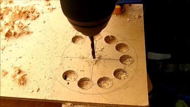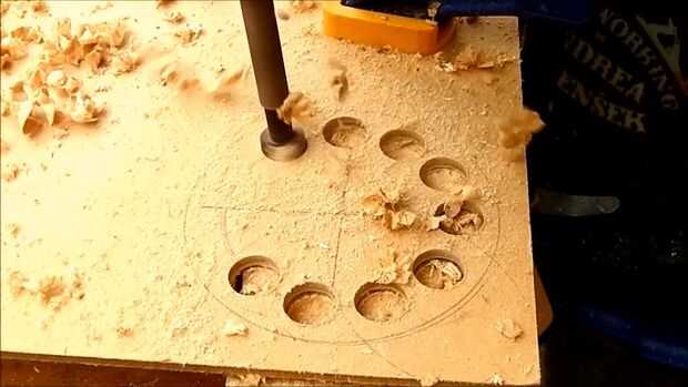 Perfore los agujeros con 1/2 '' pulgadas pieza Forstner (para resultados limpiamos) o utilizar cualquier broca de diámetro similar.