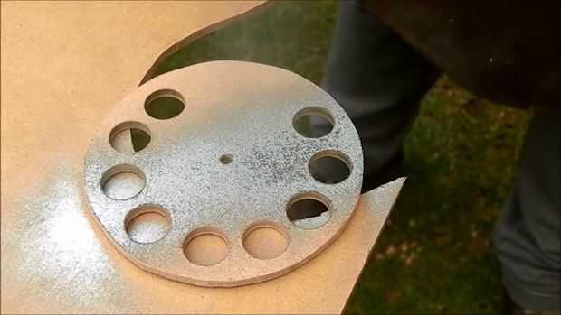 Usar la sierra caladora cortar el círculo, aerosol por todos lados con el color de su elección (yo usé pintura de aerosol de plata).
