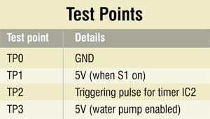 Una vez temporizador monoestable que IC2 se dispara, su salida va alta durante el período de tiempo preestablecido. El período de tiempo depende de los valores de la resistencia R7 y el condensador C4. Se puede ajustar entre 8 y 50 minutos con olla metros VR1. La alta salida en el pin 3 de IC2 energiza el relé RL1 para encender la bomba de agua.