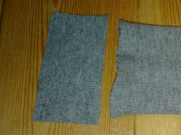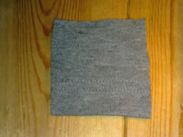 Para mi teléfono móvil con capucha, quería una buena manera de mantener los auriculares y el cable cuando no estaban en uso, así que decidí hacer una bolsa para la sudadera con capucha y hacer con un cierre de velcro para que el cable podría terminar alrededor de la bolsa. Para hacer uno, usted necesitará cortar un trozo cuadrado de tela que es el mismo ancho que tu dispositivo electrónico. En este caso usé otra vez un borde acabado de la tela que utilicé. Si eres incapaz de, o está utilizando a tela nueva, añadir otra pulgada de largo para que pueda girar el borde y terminarlo con una costura. (Usted necesitará una pulgada completa, como más tarde a coser en un velcro y querrá a una tela más gruesa un poco aquí para la fuerza).