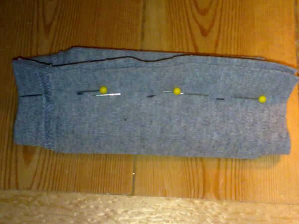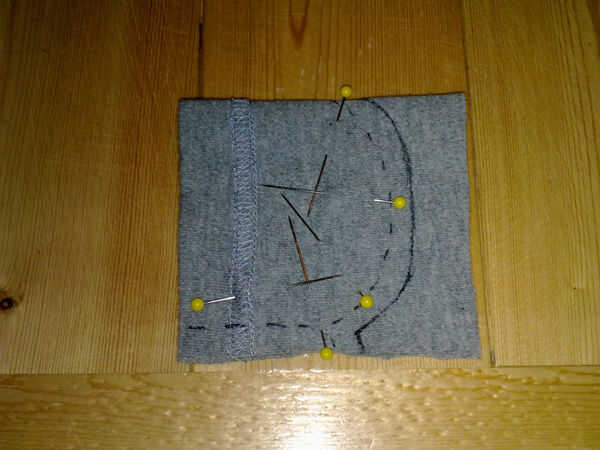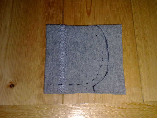 Ahora usted tendrá a mano una forma de sudadera con capucha similar a lo que hice en la foto 3. Tenga en cuenta que la parte superior de la tela en la foto es el pliegue. Las líneas rectas se cortan las líneas y las líneas del tablero son las líneas de costura.