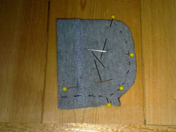 Después de haber dibujado la forma de su sudadera con capucha, puede prender las dos capas de tela juntos y cortar la capucha (como se muestra en la foto 4 y 5).