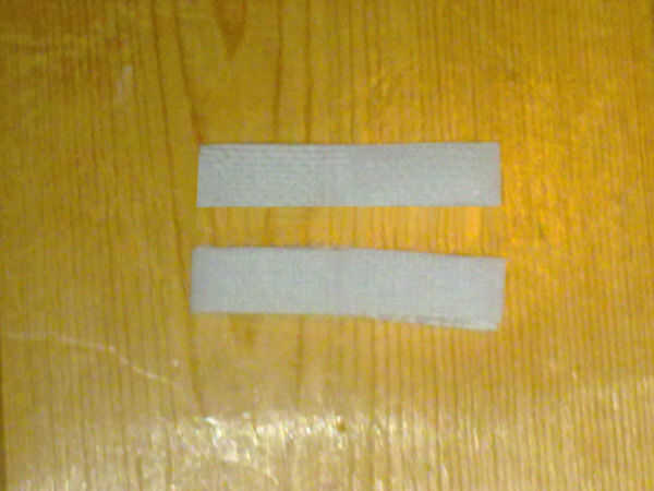 También usted tendrá que cortar un trozo de velcro para la bolsa de la sudadera con capucha. Debe ser un poco más estrecha que la pieza de que corte para la bolsa. Ver foto 9.