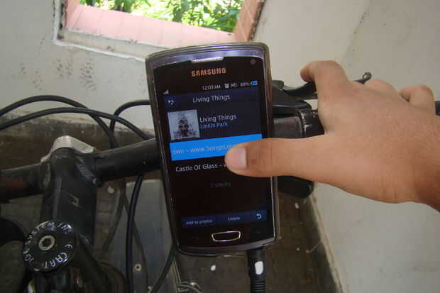 ahora sólo deberás conectar al jack de auriculares en la parte inferior del asiento y cambiar de canciones con sus pulgar-gracias al soporte! jeje... ;)