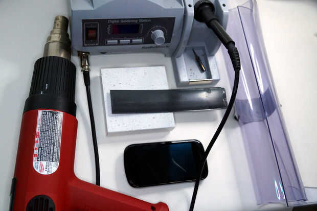 -Conducto de cinta o la superior cinta adhesiva (de prototipos antes de destruir su teléfono)-Pieza de alambre grueso recta. Como una percha cortada (para encontrar el centro de teléfonos móviles)