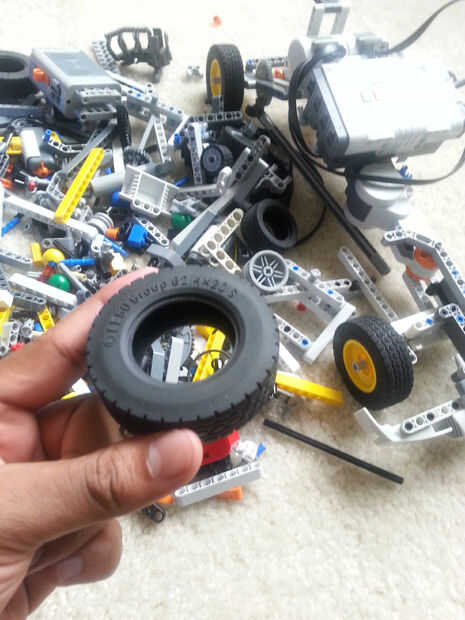 Sin embargo, las partes principales son el ladrillo NXT, tres NXT 2.0 motores, engranajes de diente dos Lego Technic 40 y dos Lego 8 engranajes de diente. Estas se utilizarán para dar un motor de 1:5 a cociente del engranaje de la rueda. No utilice engranajes NXT como reemplazos sin embargo debido a no coinciden fácilmente engranajes Technic.