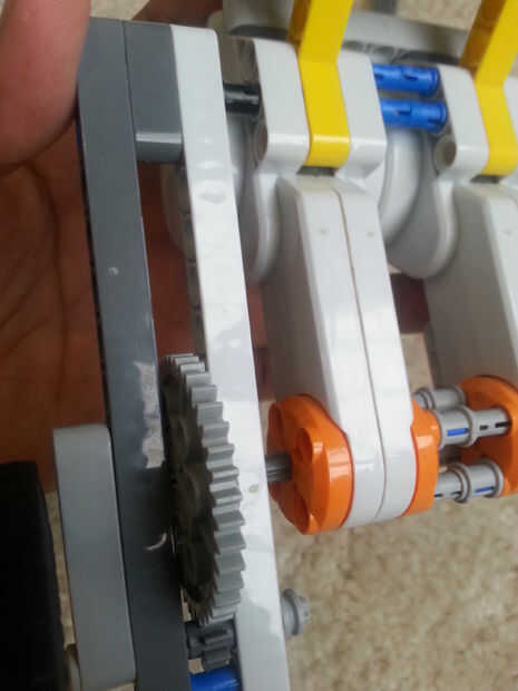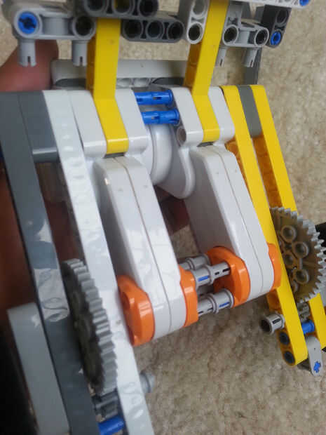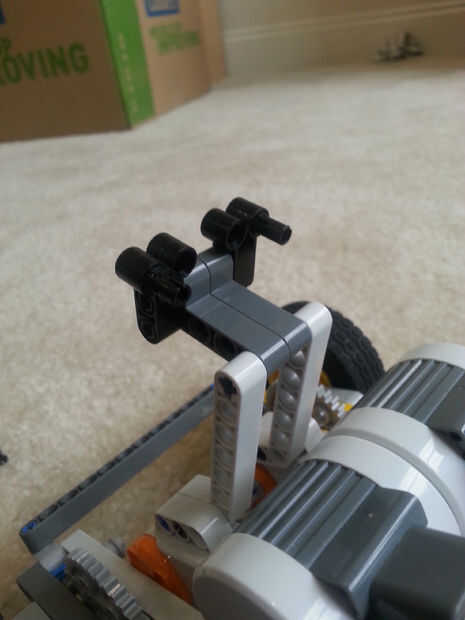 Usando un pin de negro y un rayo al perno del eje azul, conectar una viga inclinada en el interior de un motor. Hacer para ambos motores. (Imagen 5)