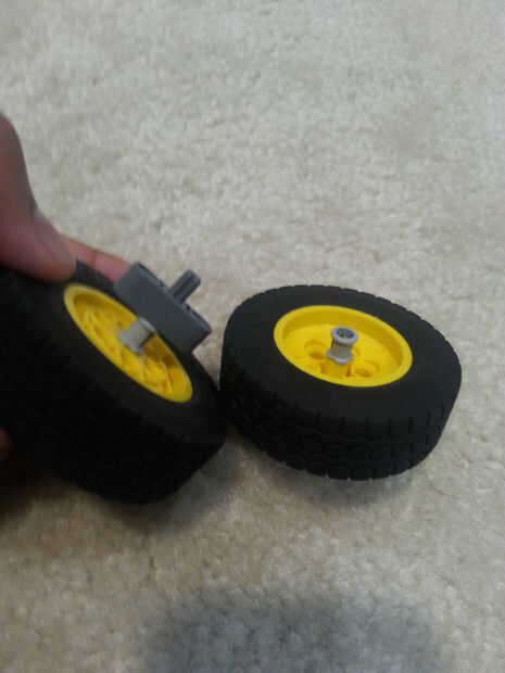 Añadir la rueda en el extremo largo de la viga y seguir con otro tapón de 1 perno. Repita el procedimiento para hacer otra rueda con soporte. Por cierto, esta era una idea bastante ingeniosa si digo lo mismo :D. (Ver imagen 11)