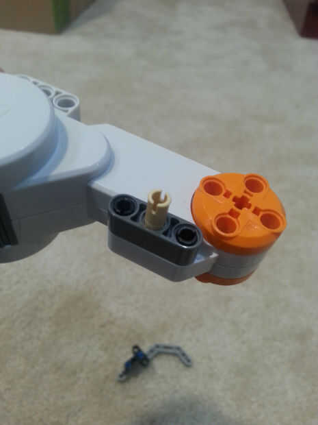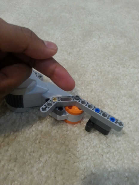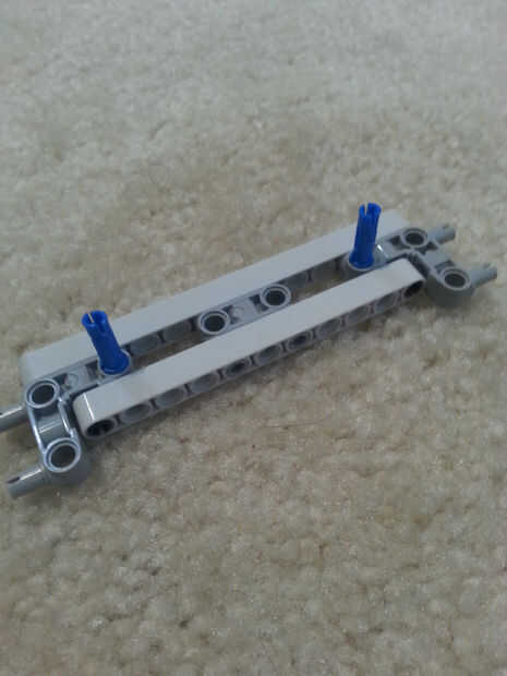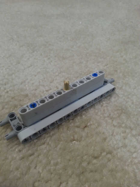 Por separado, deslice un eje 6 perno con tope a través de una viga de 3 postes y deslice un tapón de 1 perno en el extremo más largo del eje. No deben ser capaces de caer el rayo ahora. (Imagen 10)