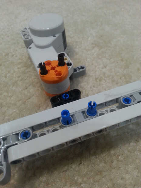 En el motor, colocar una viga de 3 perno utilizando dos pasadores negros y uno azul en el centro. (O beige) (Imagen 6)
