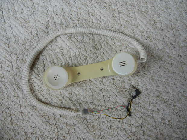Otra mejora podría cambiar hacia fuera el altavoz en el teléfono con un altavoz diferentes. Realmente sólo podría cortar el extremo del cable de teléfono y soldar directamente a la entrada, pero he decidido no.
