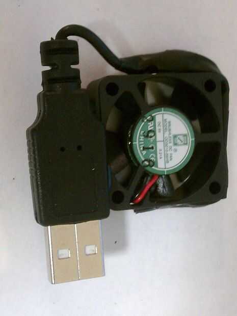 6. super pegue cordón y enchufe USB al cuerpo del ventilador.
