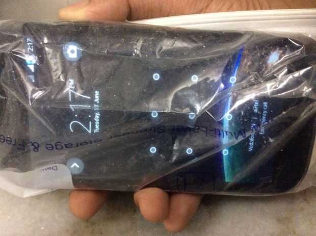 Coloque el teléfono en la bolsa de cremallera hermética y cremalleras