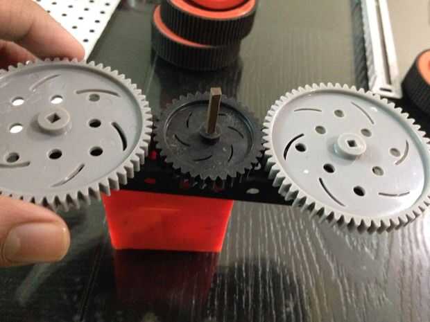 Ahora a enlazar algunos engranajes. Te damos 2 engranajes con un engranaje pequeño entre como esta. Esto nos ayudará a hacer un buen diseño maniático que da más cantidad de tourge.