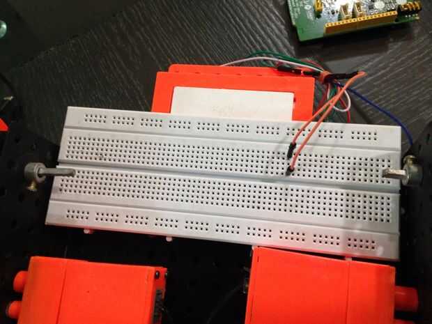 Ahora nosotros también podemos interfaz sensores, para añadir un protoboard. Añadir bajo el robot por lo tanto no es visible!