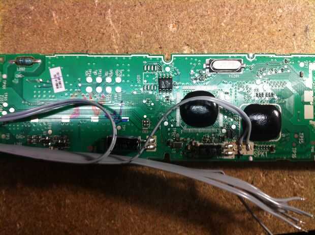 -Con cuidado-el altavoz de la soldadura y sustituirlo por los alambres de 11 y 12 del cable de cinta. 11 cable es el positivo y el cable 12 es el negativo.
