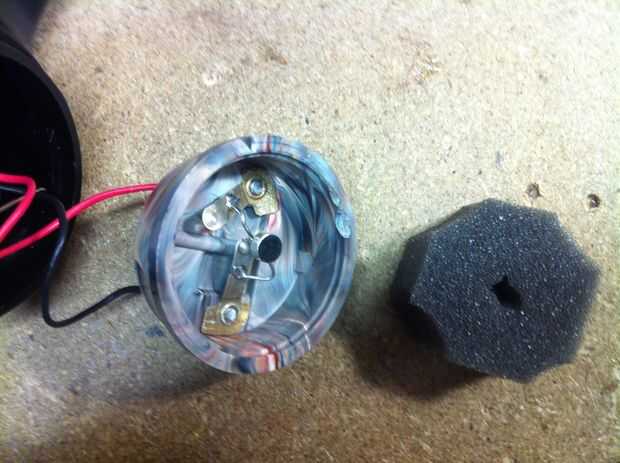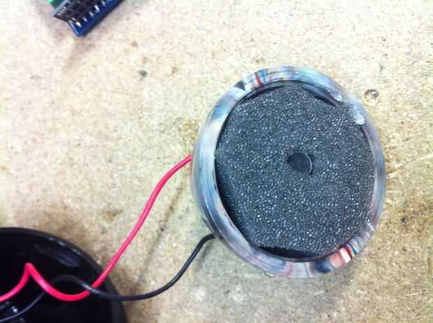 -Preparar un cojín de espuma con un agujero en el centro para el micrófono de electret.
