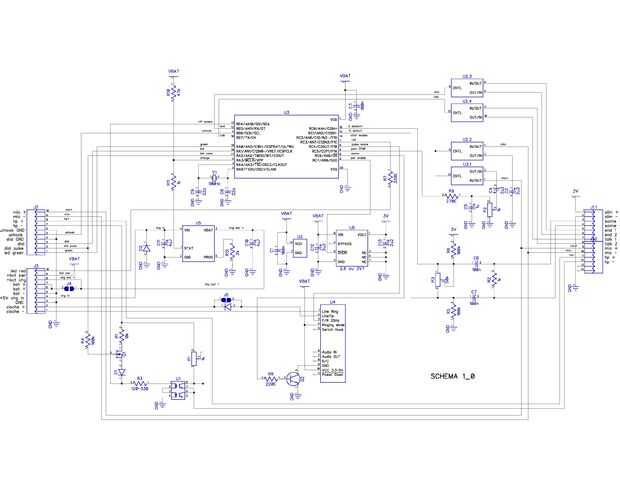 Contactos de las dos esferas están conectadas a 2 entrada de uC (con internos pull-UPS), para contar los pulsos. Generación de DTMF se realiza por software una salida PWM filtrada. R9 y C5 son el filtro de paso bajo. P2 es el ajuste del nivel de DTMF. U2, es un cuádruple conmutador analógico. 2 de estos interruptores se utilizan para agregar la modulación DTMF directamente en el micrófono del auricular de entrada sólo cuando sea necesario. Como el auricular DECT está generando mucho ruido en la fuente de alimentación, esto evita el ruido para ser escuchado en la línea y evita así nivel mic a ser atenuadas por P2. C4 y C2 cuadras DC ambos polarización de Micrófono electret y salida PWM.