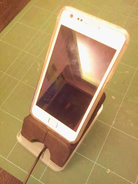 Se trata de un soporte de madera teléfono hecho con madera de 1/8 de pulgada, utilizando la vida técnica para hacer madera flexible de la bisagra. Es ideal para ver películas o espectáculos o vídeos en la orientación del paisaje, pero no puede apoyar