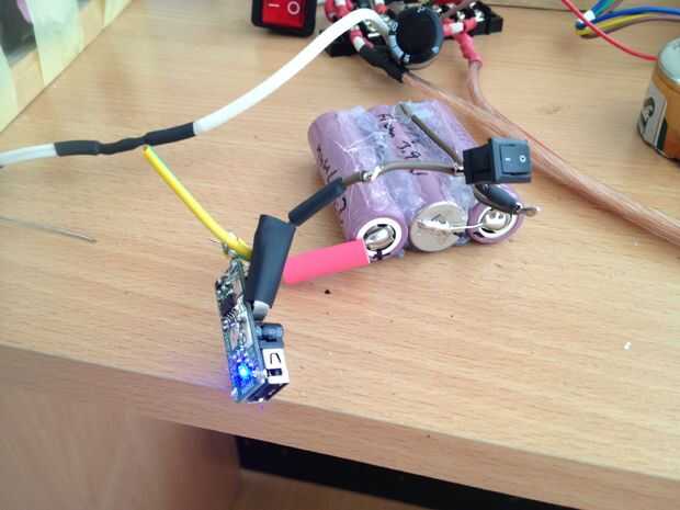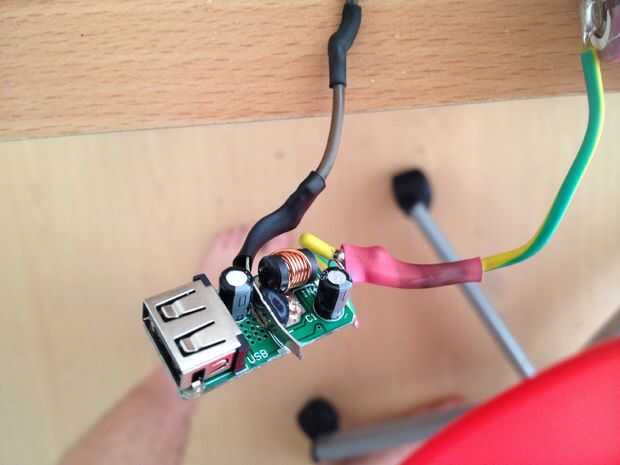 Soldar los cables y cambiar juntos. El interruptor desconecta la tarjeta USB cuando no esté en uso. Yo también soldar piezas de alambre antes del interruptor así que usted puede cargar con el interruptor apagado.