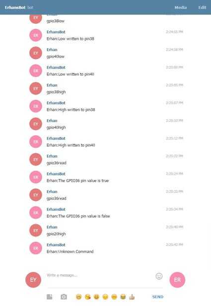 Como veis sobre cuadros cuando envía comandos válidos a Bot se pueden lectura y escritura pines GPIO de Raspberry Pi. Es media puede controlar o estado de los dispositivos de lectura sobre el telegrama con Raspberry Pi y el circuito de control simple. No necesita ningún pc o dispositivos costosos. ¡ Genial!