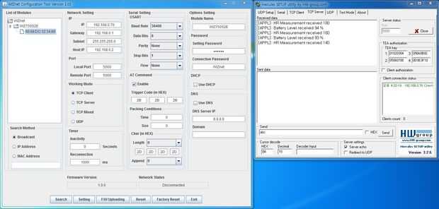 6. para cambiar el modo de trabajo de destino TCP cliente o modo mixto por herramienta de CFG.