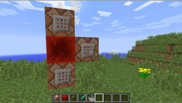 Ahora, coloque un bloque de comandos en un lado del bloque de redstone y escriba este comando