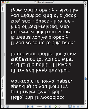 Así que después de hacer un 'guardar' en la vista previa, abrir el mismo archivo en Adobe Reader (estoy usando 7.0 en una Mac). Adobe Reader no parece tener alguna manera de voltear verticalmente, sino que permite el archivo para ser impreso (.pdf otra) con la opción 'páginas en orden inverso' seleccionada. Después de hacer esto, entonces abro el archivo con Adobe Reader, modo de visualización seleccione Página sola, y estoy listo para rodar (literalmente).