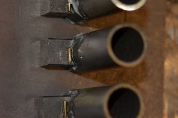 Hay muchos tipos de aleaciones para soldar. Algunos son más fluidos, algunos son más viscosos. Aquí estoy utilizando "soldadura aleación de plata" que es contenido de 45% plata ("seguridad-Silv 45" por fuentes de soldadura Harris). Fluye como agua caliente una vez basta, que es lo que se necesita para ser dibujado por tensión capilar en la estrecha grieta entre el tubo y la ficha plata soldadura de rodamiento que es casi la mitad-plata puede ser cara - creo que pagué $45 para este 1 contenedor de onza troy - pero tarda sólo muy pequeñas cantidades para llenar la brecha. Compré esta bobina de 1 onza de plata que suelda alambre hace unos dos años y han dejado un montón. Para cada ficha, necesitará menos de 1/2" longitud del alambre que suelda.