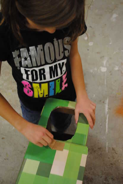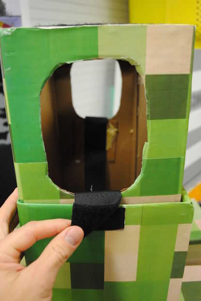 Colocar la cabeza: une la cabeza con 2" tiras de Velcro. Esto permitió para el retiro fácil de la cabeza (lo necesario para comer dulces durante las diversas festividades de Halloween). El Velcro fue adherido a la cartulina con pegamento del gorila.