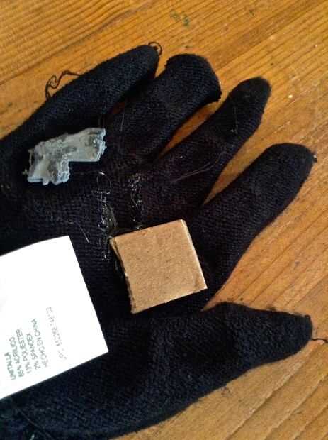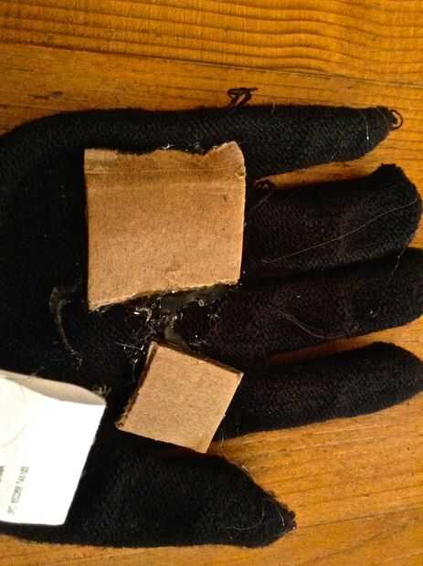 Ahora, a las piezas de adentro hacia afuera y pegamento caliente guante de cartón a la parte posterior de las bisagras. Esperar que seque, vuelta a normal y su listo para trabajar!