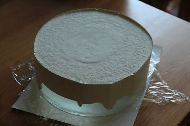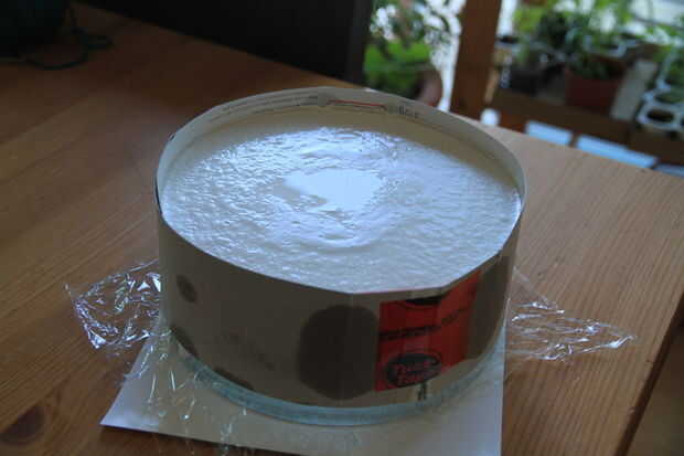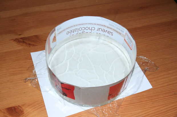 Cubrir el vidrio con una película plástica. Hacer un cilindro de cartón alrededor de la Copa y verter el yeso dentro. Deja secar y retirar el cartón. Separar cuidadosamente el vidrio y el archivo de las fresas en el borde.
