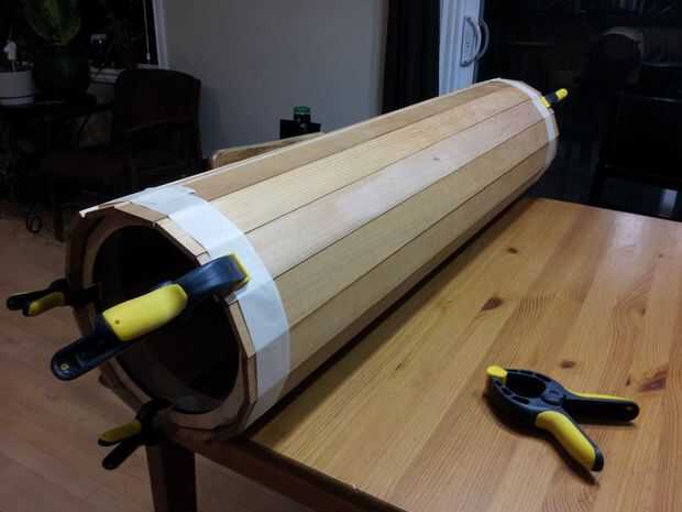 Para montar el tubo, utilice dos bandas de cinta adhesiva para unir todas las tablas y rodar alrededor de los deflectores. Puede utilizar sólo un bafle en cada extremo ya que es sólo un montaje temporal.