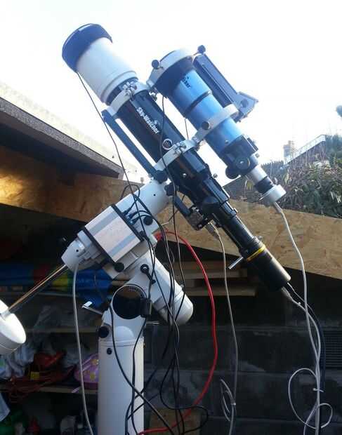 Hasta hace poco tiempo mi imagen configurar ha sido portátil. Así que si se presentó una noche clara crujiente agradable con buenas condiciones de imagen tendría tomar todo el equipo de mi taller y todo hacia fuera en el patio. El equipo es fuerte pero delicado para no hablar de un montón de cables que hay que hacer. Una vez que está montado todo el equipo entonces tendría que pasar por un proceso de alineación polar para alinear el eje de montaje con el eje terrestre de rotación. Todo trabajo de al menos 40 minutos suponiendo que nada salga mal y luego por supuesto me gustaría tengo entonces tomarlo todo aparte otra vez en algún momento tonto de la mañana cuando todo está cubierto de escarcha! Con el Reino Unido impredecible condiciones climáticas tendría que ser realmente bueno para los que vale la pena todo el esfuerzo.