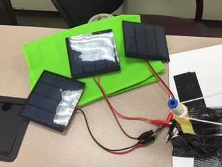 Para este proyecto, decidimos utilizar un arsenal solar para generación de electricidad. Conectamos tres paneles en una serie directamente al motor.