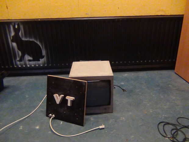 Que el funcionamiento interno de la tv vieja, la cubierta de concreto. Puede atornillar a los 4 trozos de madera, que fueron colocados en el paso uno.