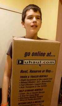 Comenzó con un cuadro de utilidad de deporte de U-Haul que cortar y añadido los agujeros para la cabeza y los brazos.