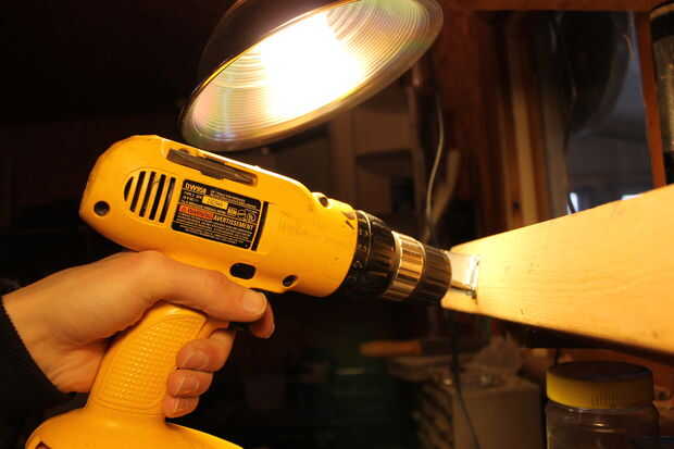 Para empezar, encontrar un lugar que funciona para usted. La mayoría de mis proyectos hacer en el garaje, así que decidí montarlo sobre un estante que se cernían sobre mi mesa de trabajo. Instale el soporte del lado izquierdo, medir a lo ancho de la persiana e instale el soporte derecho.