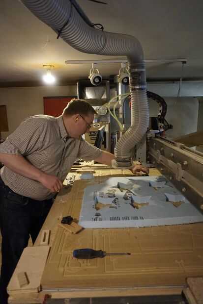 Se utilizó un router CNC para cortar las piezas de la bisagra del faux de la portilla.