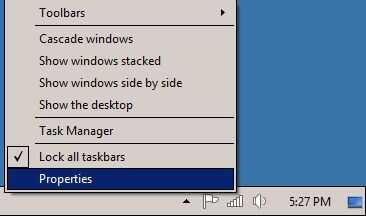 Haga clic en una sección en blanco de la barra de tareas y seleccione "Propiedades". En la barra de herramientas navegación propiedades check "Bloquear la barra de tareas" y "Uso de botones de la barra de tareas pequeñas" cajas. Para los menús de lista desplegable a continuación, seleccione "Base" y "No combina".