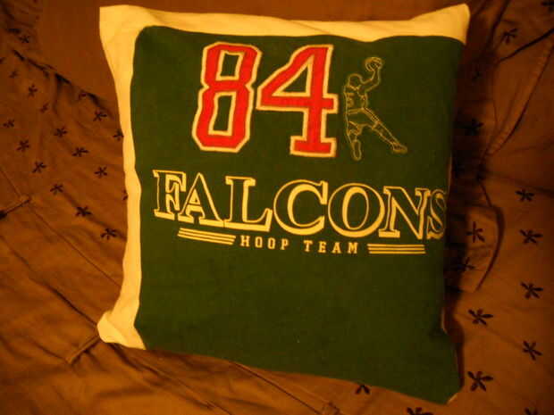 Esta es una linda almohada que puede hacer de una camiseta vieja.La T-shirt de Floyd rosado era un adulto pequeño compré 14" almohadilla cuadrada forma para colocar dentro.La camiseta de la fuerza aérea fue un extra grande usé una forma de almohadill